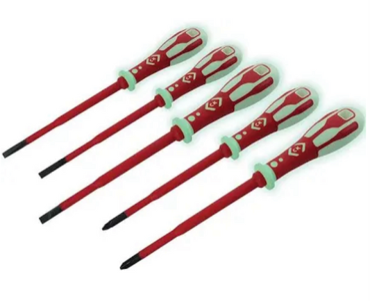 1) CK 5 Pce Glow Dextro VDE 1000v Insulated Slim Pozi/Slot Screwdriver Set,T49283PD