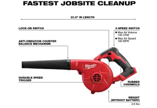 1) New Milwaukee 0884-20 M18 18 Volt Cordless Compact Yard Leaf Blower Sale, Red Body only