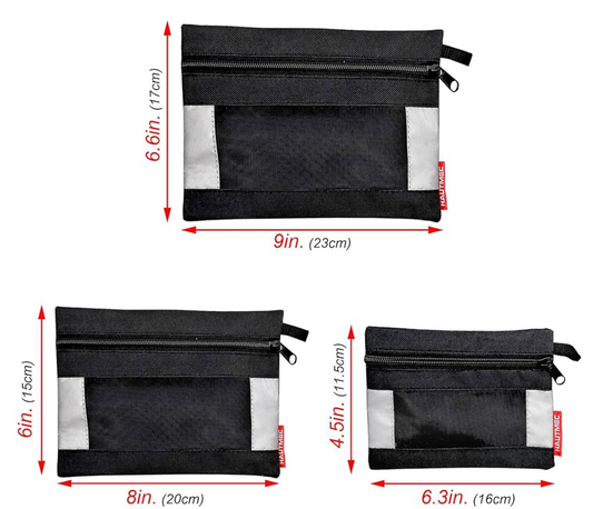 2) HAUTMEC 3 Pieces Small Tool Pouch, Multi Function Zippered Tool Poly Bag with Mesh Window, Heavy-Duty Clip