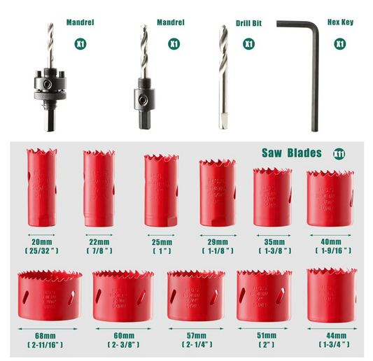 2) Bi-Metal Hole Saw, 17 PCS Hole Saw Set 20mm-68mm, Cutting Depth: 40mm, Perfect for Drilling Soft Metal, Wood, PVC Board and Plastic