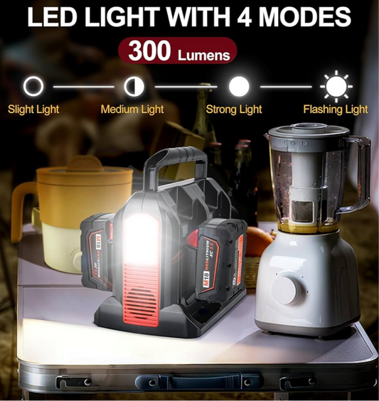 999) 350W Power Inverter for (Compatible with Milwaukee) m18 18v Battery, 4-Ports DC 18V to AC 220V Pure Sine Wave Inverter with 3 USB-A & 1 USB-C Port, 300LM LED Light for Camping Emergency(Tool Only)