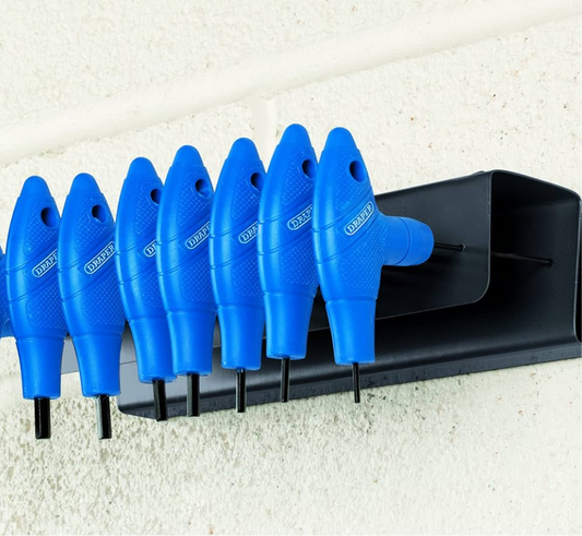 Draper 10 Piece T-Handle Hexagon Allen Key Set | Metric Long Pattern Hand Tools | Hex Key Wrench Kit | Long Arm Chrome Vanadium Steel Kit | Steel Wall Mounting Stand