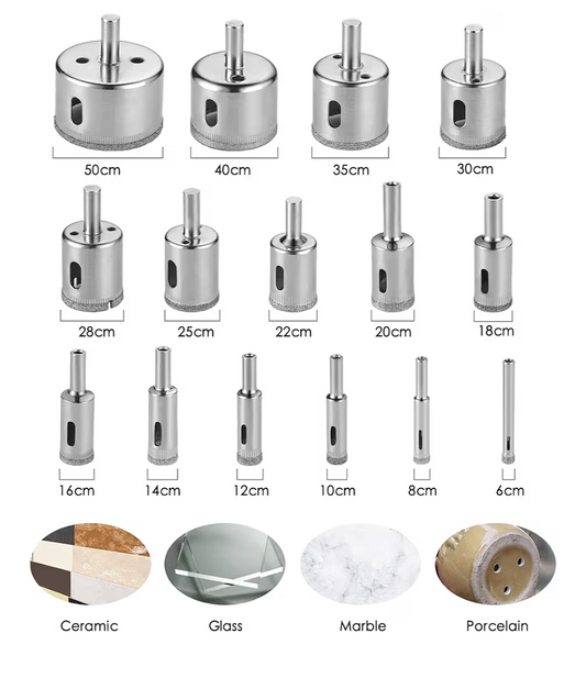 Diamond Core Drill Bit Set – 15 Piece Glass, Tile & Marble Hole Saw Kit (8mm-50mm) Carbon Steel Hole Saw Cutter for Glass/Tile/Ceramic/Marble/Porcelain Cutting