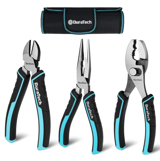 DURATECH 3Pcs Pliers Tool Set, 150mm Long Nose Pliers, Diagonal Cutting Pliers and Slip Joint Pliers