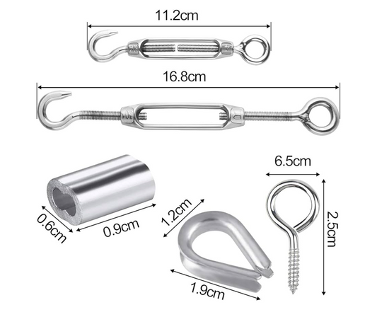 0) Catenary Wire 15mtrs - Garden Wire Metal Rope Kit -Stainless Steel M5 Turnbuckle Tensioner Cable