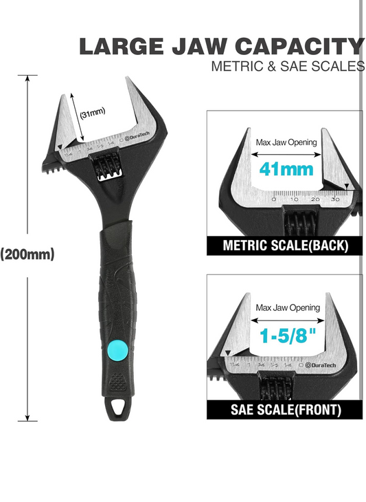 0) DURATECH 8-Inch/200mm Adjustable Wrench, Wide Jaw Large Opening