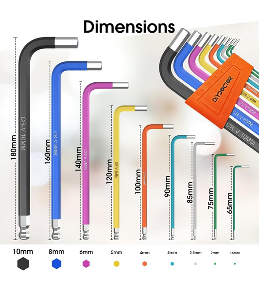 0) Hex Key Set (9 Pieces) – Long Ball-End Allen Keys from 1.5mm to 10mm – Durable Hex Key Set