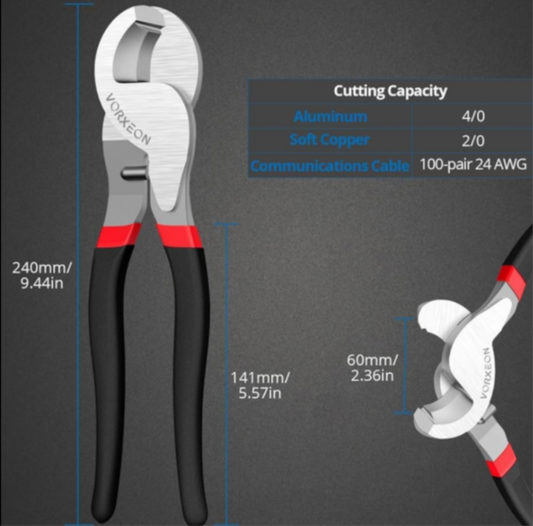VORXEON Cable Cutter 10inch Heavy Duty Wire Cutters Large High Leverage Cutter Tool for Aluminum Copper Wire Communications Cable (Except Steel Wire)