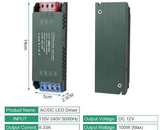 0) Best Seller - 100watt 12V LED Driver - Compact Ultra-Thin Constant Voltage Low Voltage