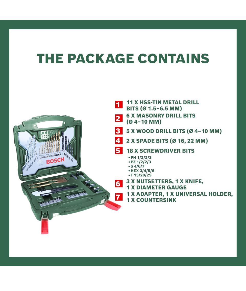Bosch 50-Pieces X-Line Titanium Drill and Screwdriver Bit Set (for Wood, Masonry and Metal, Accessories Drills)