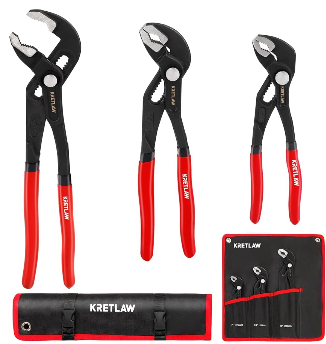 KRETLAW 3-Piece Groove Joint Pliers Set (300mm & 250mm & 180mm), Quick-Adjustable Water Pump Pliers,Cr-V V-Jaw Tongue and Groove Pliers