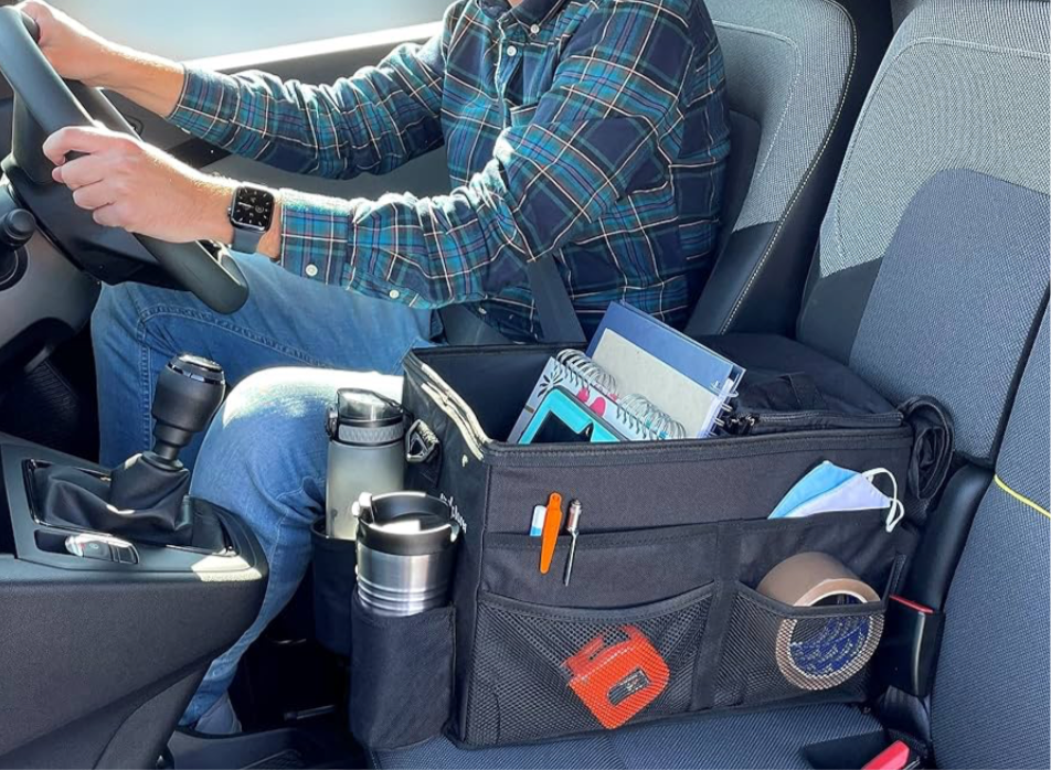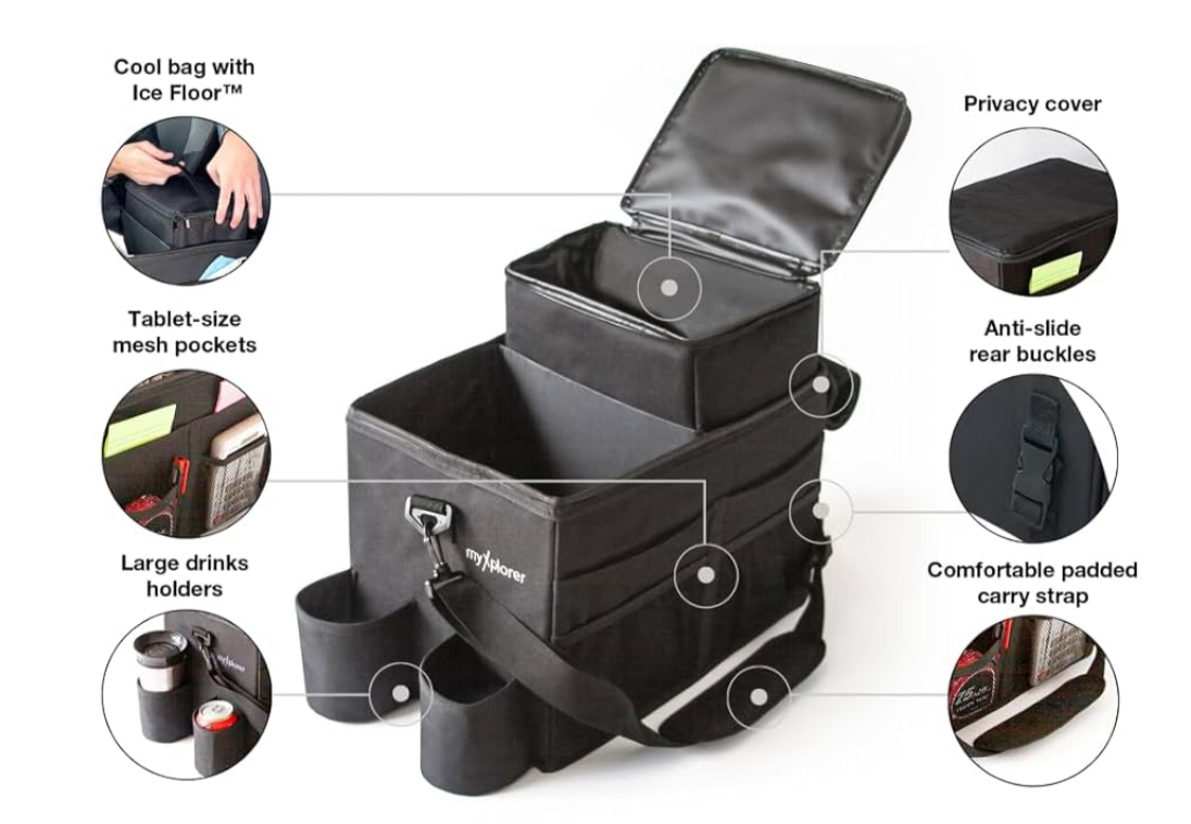 Van Front Seat Organiser, With Detachable Cooler Bag And Compartment Storage Solution, Adjustable Padded Carry Strap and Non-Slip Clips, (Black, 24L)