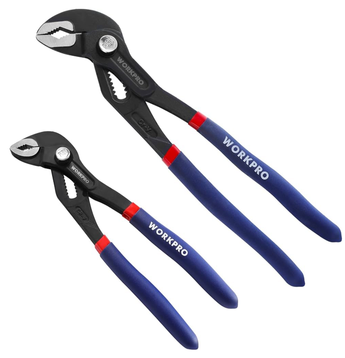 WORKPRO 2 Pack Water Pump Pliers 180mm 250mm Quick Adjustable Hose Grips, Slide Joint Pliers Set with Large Jaw Capacity and Non Slip Handle