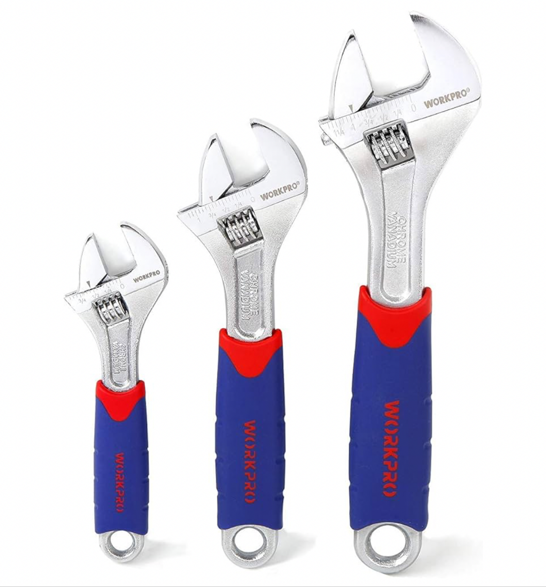 WORKPRO Adjustable Spanner Set 3-Piece, Metric and SAE Wrench Spanner, 6-inch(150mm), 8-inch (200mm),10-inch(250mm), Adjustable Spanner Wide Jaw, Soft Handle